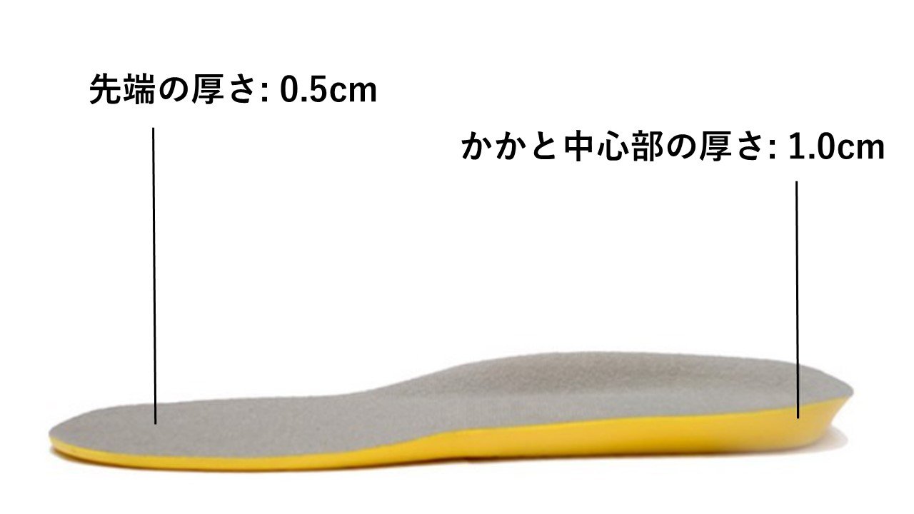 ※ There is a thickness of about 0.5 cm at the toe portion, about 1 cm at the heel center portion.