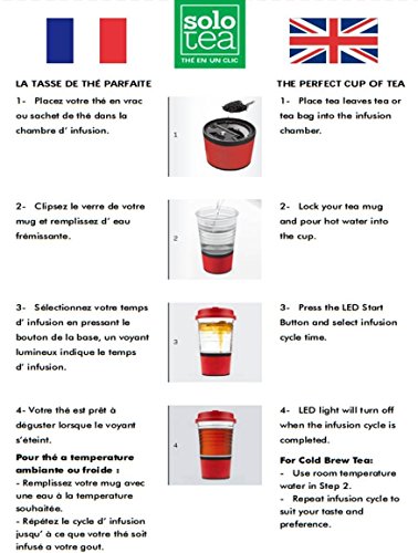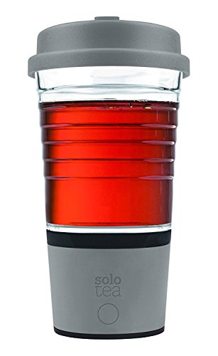 SoloTea French Design Smart Tea Brewer System with Premium 12 OZ Travel Mug 100% BPA Free (Grey)