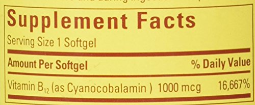 Vitamin B12 is important for red blood cell formation, proper nervous system function and for maintaining a healthy homocysteine level, which is important for cardiovascular health. Maintaining your energy level can help you feel your best. Along with other B vitamins, Vitamin B12 is vital for energy production. Vitamin B12 is also important for red blood cell formation, proper nervous system function and for maintaining a healthy homocysteine level, which is important for cardiovascular health. Vitamin B12 supplements are recommended for people 50 and over, many of whom are deficient due to decreased ability to absorb this nutrient, and for vegetarians and vegans who avoid dietary sources rich in Vitamin B12. •Helps convert food into energy •Essential for red blood cell formation •Helps maintain nervous system health •Helps maintain a healthy homocysteine level, important for cardiovascular health Nature Made Vitamin B12 Liquid Softgel 1000 mcg is guaranteed to meet our high quality standards - it is made from carefully selected ingredients under strict manufacturing processes. •Nature Made is the #1 Pharmacist Recommended Brand* •No Artificial Flavors •No Preservatives •No Yeast, Starch or GlutenFeature
