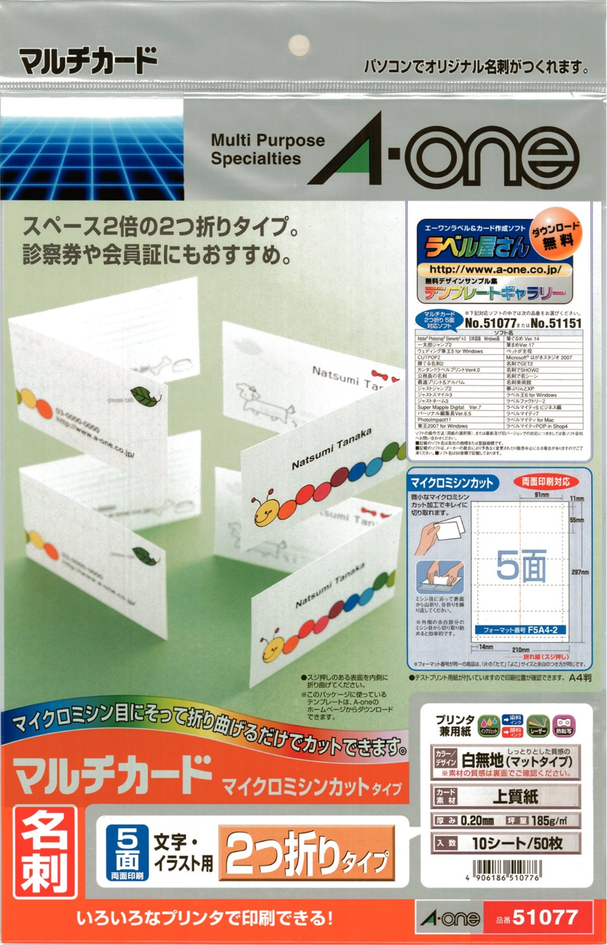 Business card folded size 10 sheet A4 size 5-sided-One (A-one) multi-card various printers and plain white paper (50 sheets) 51077 (japan import)