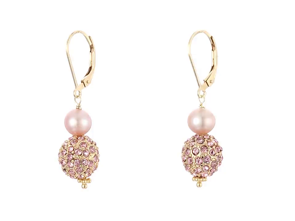 Pink Fireball and Pink Freshwater Cultured Pearl Snowman Earrings