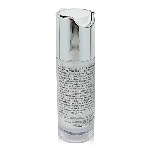 A deep wrinkle, eye expression line concentrate. Eyes appear and feel firm. Patent-bending blend of six anti-aging peptides and neuropeptides at a maximum strength of 23%. This exclusive, patent pending blend contains six powerful, 100% active anti-aging neuropeptides and peptides (at a maximum concentration of 23%), plus a 6% proprietary eye complex. The result is a scientifically advanced formula that visibly reduces the appearance of wrinkles, lines and creases, and leaves the delicate eye area feeling firmer, softer, smoother and noticeably younger.Feature