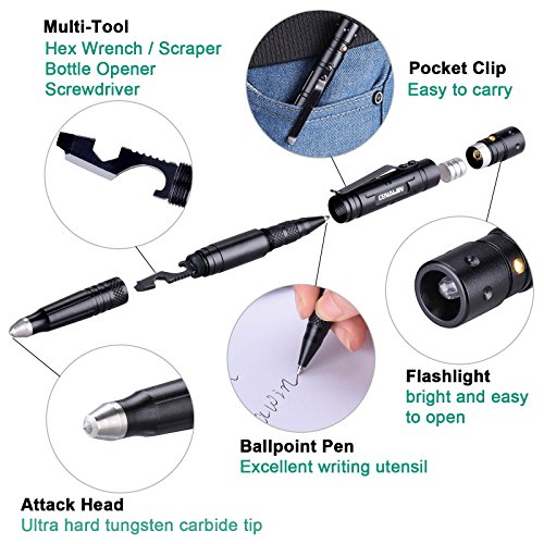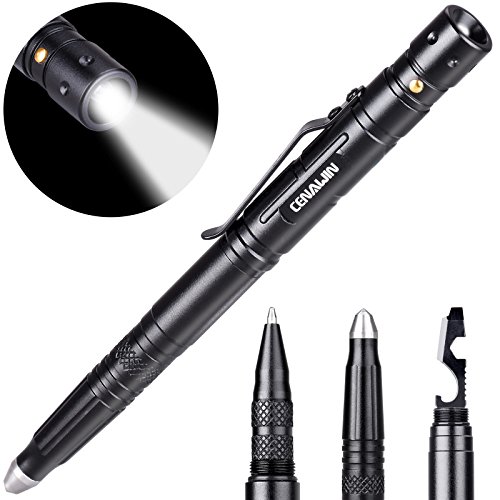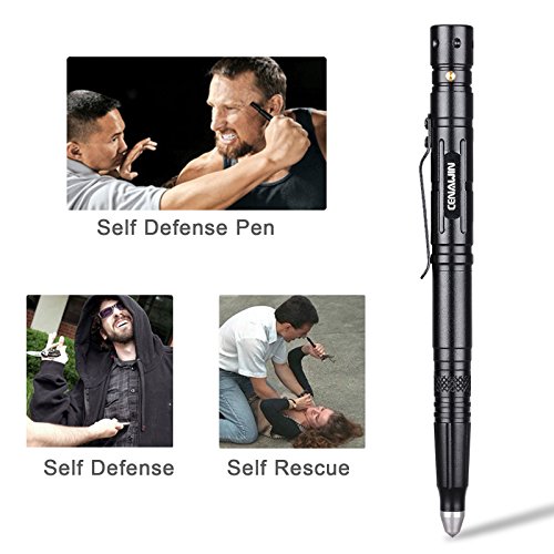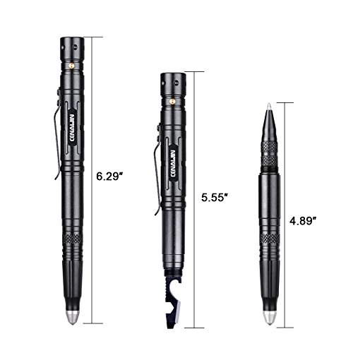 Cenawin Tactical Pen, Self Defense Pen Multi-functional With Tactical LED Flashlight + Ballpoint Pen + Glass Breaker + Multi Tool for Survival Outdoor Travelling Hiking Camping Gift (Black 4 in 1)