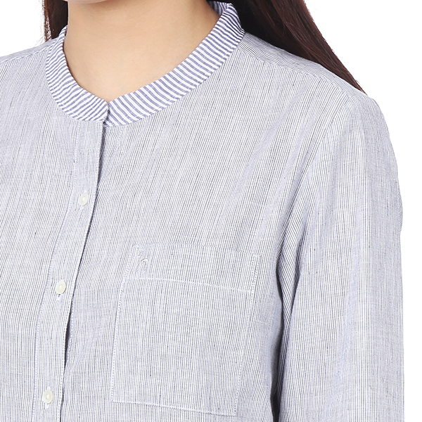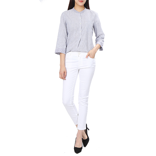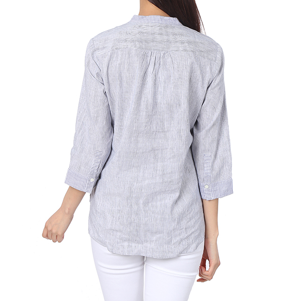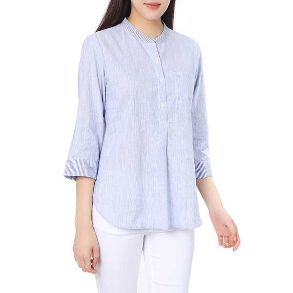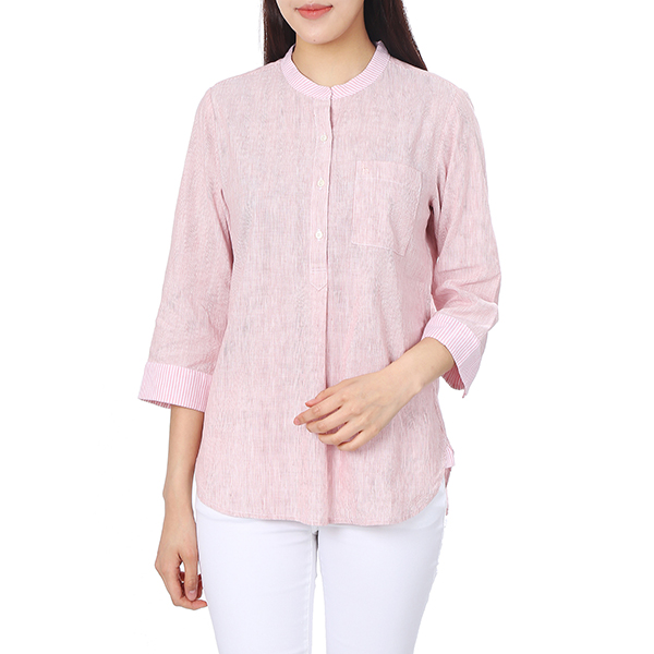 린넨 혼방 소재를 사용하여 쾌적한 착용감을 주며 앞보다 뒤가 긴 언밸런스한 밑단으로 트렌디함을 살렸습니다.