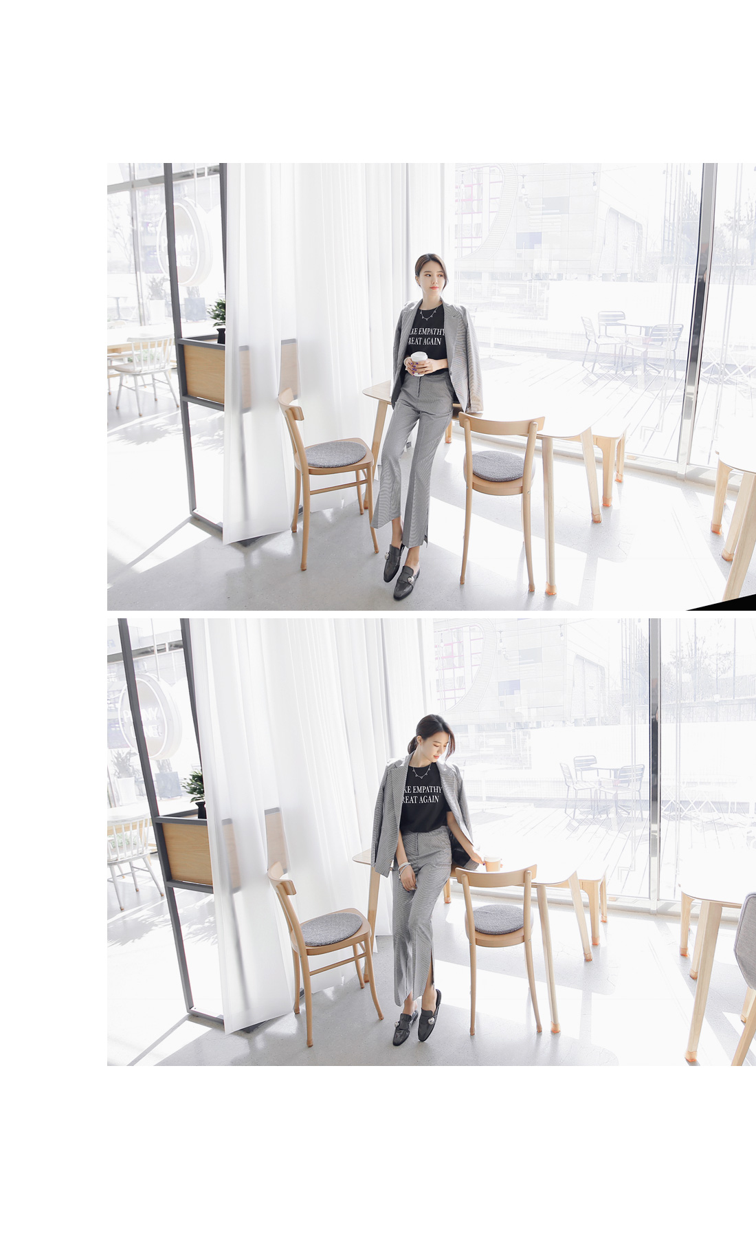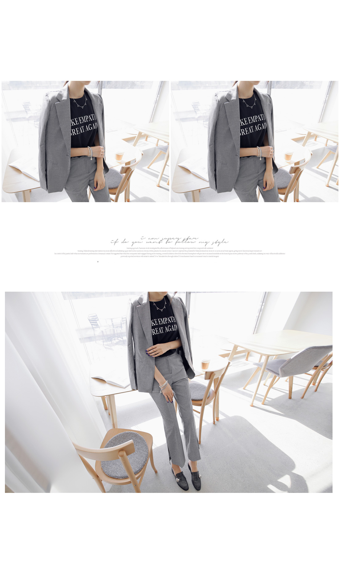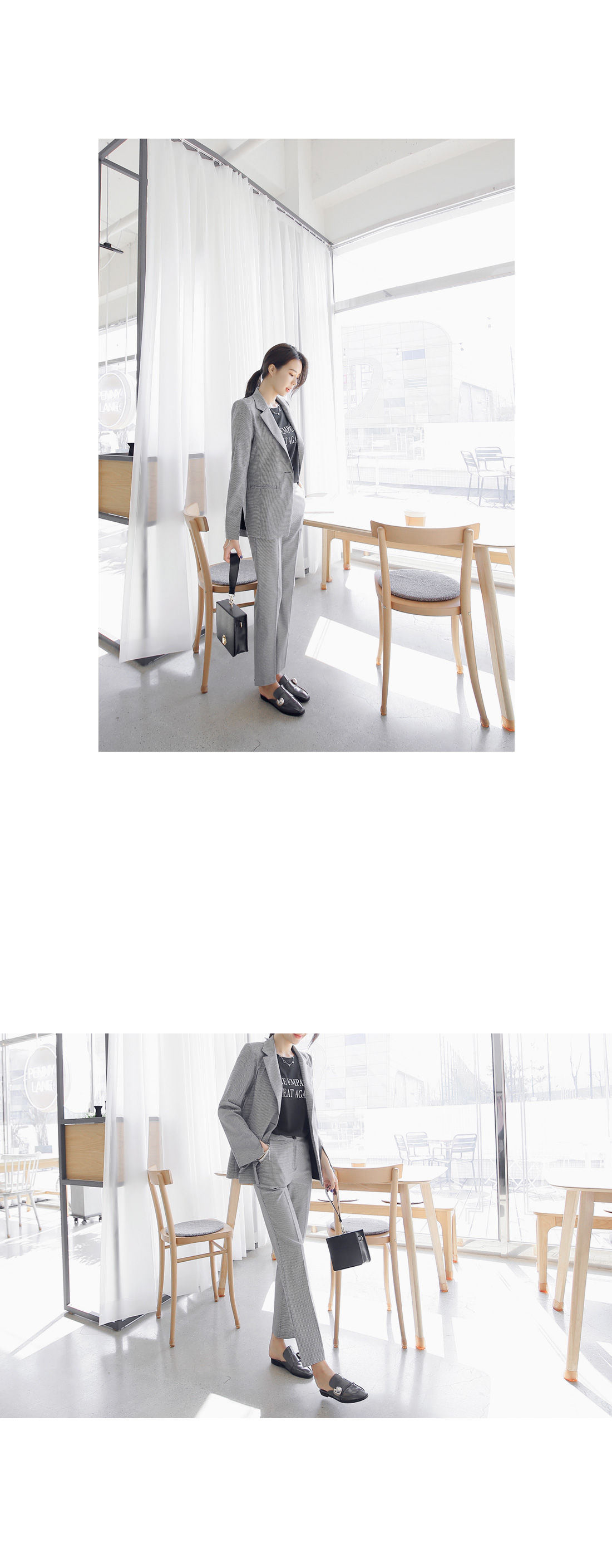 군더더기없이 깔끔한 핏감의 자켓 아이템이예요~^^ 체크패턴과 소매트임으로 모던하고 스타일이 돋보이는 코디매치를 할 수 있어요~ 바디라인에 적당히 핏되어 슬림하고 깔끔한 핏감을 느낄 수 있어 격식있는 자리에도 멋스럽게 즐길 수 있답니다~^^ 팬츠,스커트 등과 함께 매치해도 부담없이 즐길 수 있는 자켓 아이템이예요~