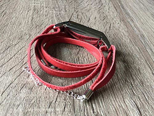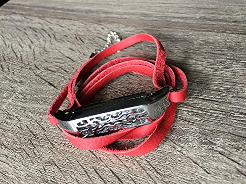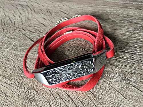-. Title : Handmade Red Leather Bracelet for Fitbit Flex 2 Tracker Adjustable Size 4” - 7.5" Band with Silver Jewelry Housing