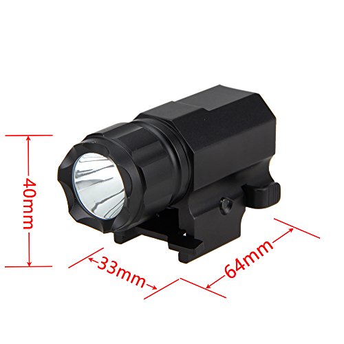 - Compact 500 lumen Tactical Pistol Flashlight with strobe feature, Very bright at 40 to 50 yards, powered by 1 x CR2 battery (Not Included)