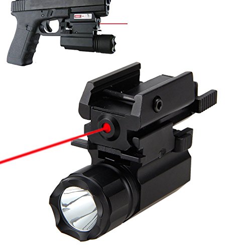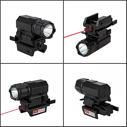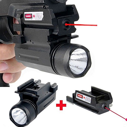 - Picatinny flashlight laser combo include 1 X Compact 500 lumen Tactical Pistol Flashlight with strobe feature, 1 X Red Laser sight with 20mm Picatinny Weaver rails. The laser sight intensity/wavelength: <5 mW peak, 532 nm, Class III R, Powered by 2 x LR44 batteries (Include)