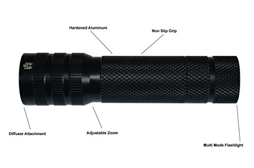 Albus Black Focusing Tactical Flashlight 300 Lumen Super Bright Mini Complete with Free Diffuser