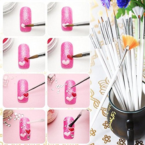 20 pcs Nail Art Gel Design Pen Painting Polish Brush Dotting Drawing Tools Set