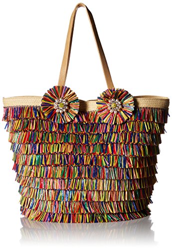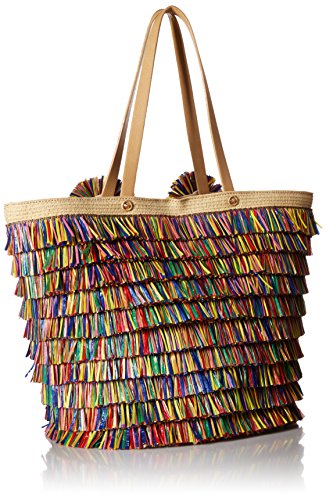 Betsey Johnson Tiki Time Multi Colored Raffia Tote Shoulder Bag