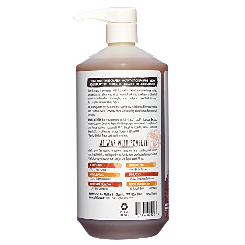 Gentle, creamy shampoo formulated with Unrefined Shea Butter, Virgin Coconut Oil and anti-oxidant Shea Leaf extract cleans thoroughly without stripping hair's natural oils. Scented with refreshing, pure Lavender essential oil or a relaxing blend of Vanilla Extract and Spearmint essential oil. Unscented option contains no added scents. Carefully formulated for Everyday use on all hair types. Equality-Empowerment-Beauty. These are the three principles that Alaffia follows to not only bring customers the best natural, fair trade skin and hair care, but also to help relieve the cycle of poverty in Togo. Alaffia empowers West African communities to become sustainable through the fair trade of indigenous resources. We encourage empowerment through our community projects, our women's cooperatives, and through education and involvement in our local customer communities. We firmly believe that the cooperation of people across the world is an essential part of building sustainability in all communities.Feature