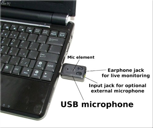 -. Feature : High sensitivity, high fidelity mono omnidirectional microphone built-in / Headphone monitor jack with independent controls so you can hear what you are recording. Also serves as the headphone output for playback. (The real-time headphone monitor is not activated with Mac). / Microphone jack for an external microphone. If an external microphone is pled in, the sound from the external mic is blended with the built-in microphone. Microphone must be compatible with computer mic inputs. If you need an external microphone with the same sound quality as the mic built in, this is an excellent choice. / Optional USB extenders are available for tight clearance USB ports. / Optional USB extension cables available if you want to move the mic away from the computer, or if you want to attach the mic to the lid of a laptop with some Velcro (not supplied).
