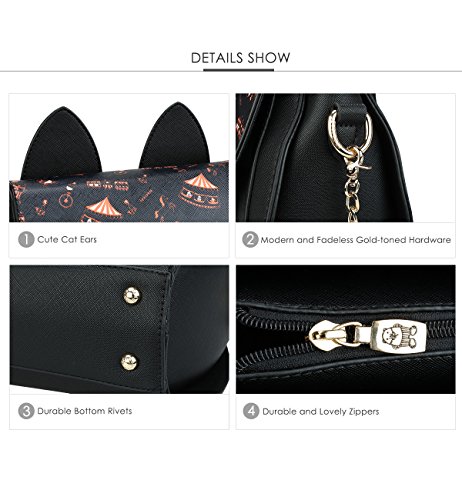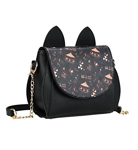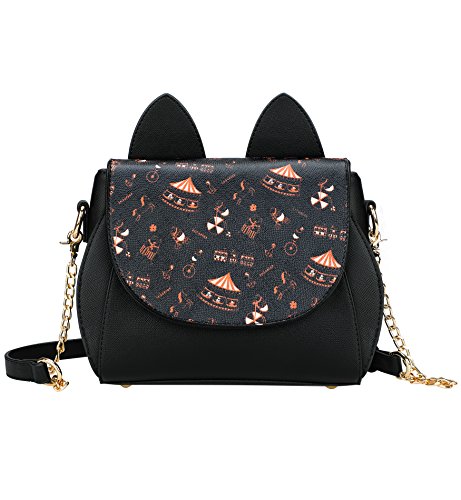 Tom Clovers Womens Girls Cute Cat Ears Cartoon Patterns Small PU Leather Handbag Cross Body Shoulder Bag Sling