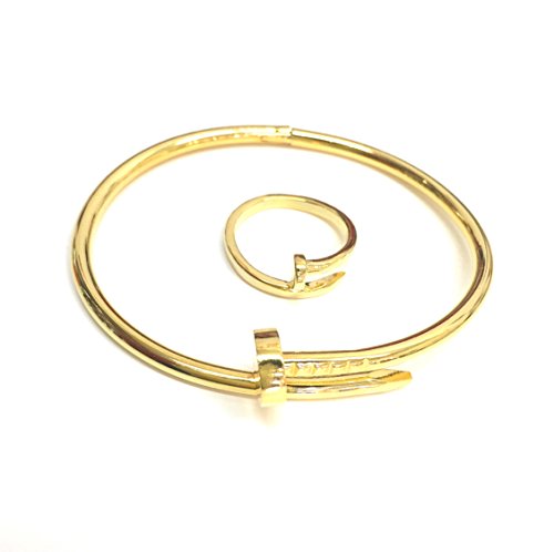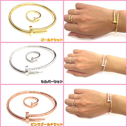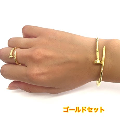 원본상품명: 超お得セット!男女兼用!サイズフリ?!釘ブレスレット&指輪 (豪華ゴ?ルドブレス+指輪)