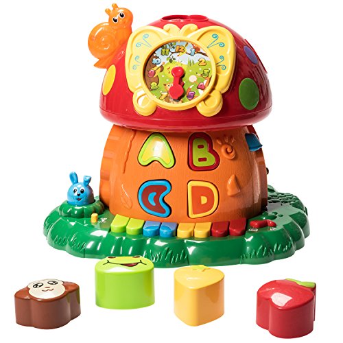 -. Feature : Prextex Electronic Magic Mushroom House Provides Hours of Fun, Action and Education at the same Time! Perfect Christmas Toy Gift! / Kids will learn to Sense the time as They Play and Fiddle with the Clock, All the While Listening to a Variety of Happy Beats and Rhythms from Sweet, Age ol' Nursery Rhymes. / Use the Colorful Counting Beads and Cubes on the Cartoon Abacus to Teach Kids the Concept of Numbers. / When Inserting Blocks, Shapes, Letters and Animals, Name of Shape is Announced, that will Teach kids Pronunciation and Help Kids Develop Cognitive Skills. Piano Keys will Provide Entertainment and Help Develop Musical Skills. / One Magic Mushroom House, a Ton of Awesome Action! Requires 3 AA Batteries (Not included)
