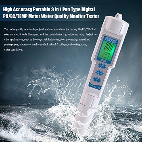 PH/EC/TEMP Meter Professional 3 in 1 Portable High Accuracy Handheld Pen Testing Water Quality Tester Meter