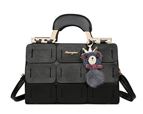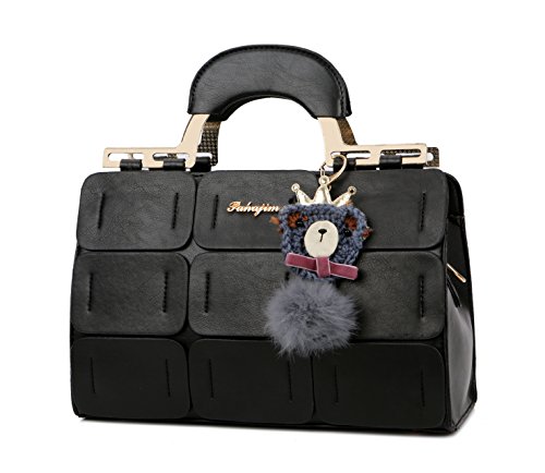 Pahajim The new Boston bag for women PU leather women top handbag shoulder bag (black)