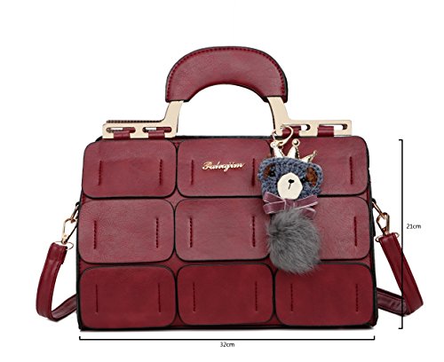 - A classic Boston bag, fashion stitching shape, the handle has a detailed pattern, with a lovely small bear pendant.unique appearance & wonderful gift idea!