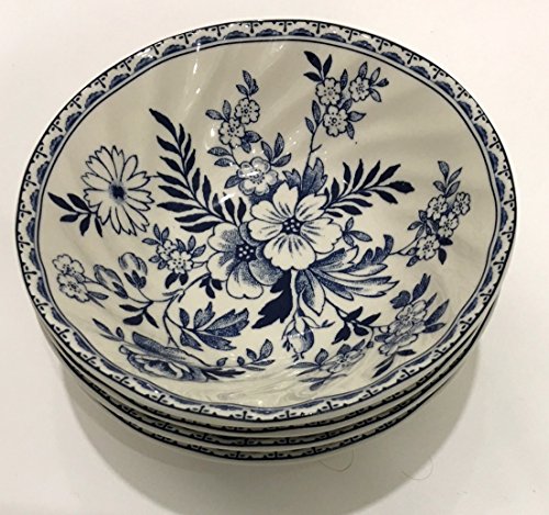 Johnson Brothers Devon Cottage Soup / Cereal / Dessert Bowl 6" | SET of FOUR (4) | Blue and White