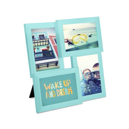 -. Feature : Collage-style desktop frame displays four photos / Constructed of molded wood; black finish; glass inserts / Holds four 4 by 6-Inch photos / Size: 11-3/4 by 11-3/4 by 1 -Inch / Design: Umbra Design Group