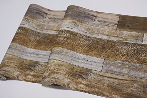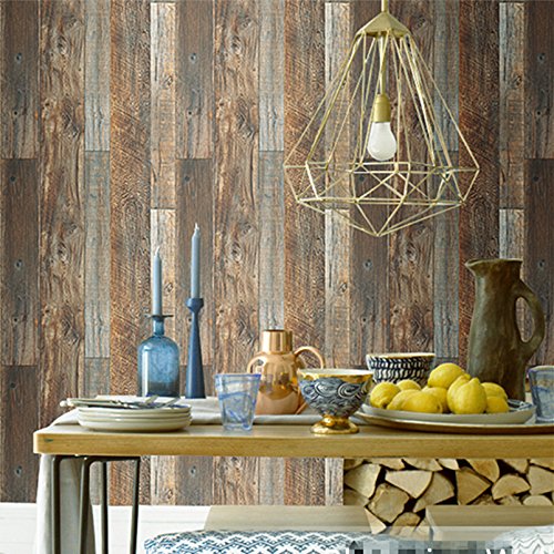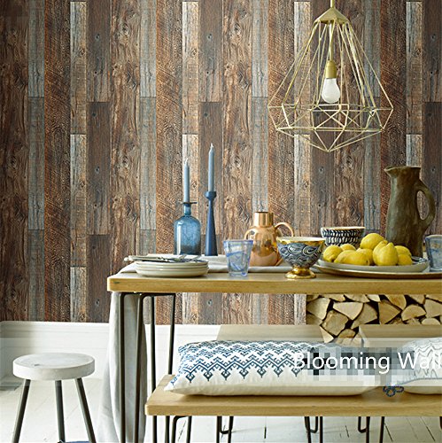 -. Title : Blooming Wall Vintage Faux Wood Wallpaper Rolls Brown Barnwood Wallpaper Murals Home Kitchen Bathroom Decoration, 20.8" x 374",Yellow Multicolor