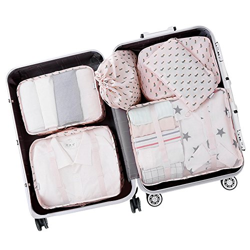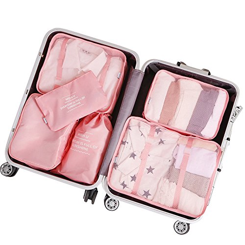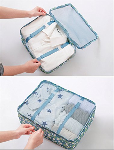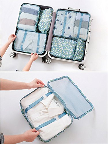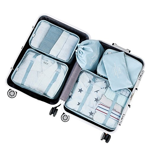 6 PCS Travel Organizers Packing Cubes Luggage Organizers Compression Pouches by VClife® . Material: water-resistant nylon + breathable mesh with 2 way easy-pull zippers.