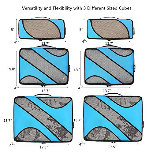 AVOID OVERWEIGHT CHARGES - Your 6 piece set fits like a glove into most airline carry-on suitcases, tote, weekender, backpacks and duffel bags. Great way to keep organized for FAMILY breaks, BUSINESS travel, BACKPACKING, CAMPING, HIKING, RV, CRUISE holidays & SADDLEBAGS. Take 1 cube with you as a carry-on item to reduce weight on checked-in luggage.