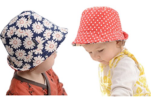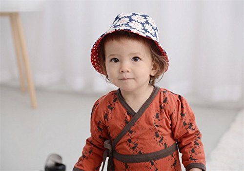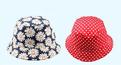 Baby Kids Hat with Chopstring Dot Daisy Pattern Reversible Bucket Sun Hat
