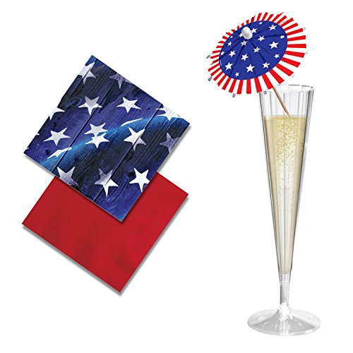 -. Binding : Health and Beauty -. Brand : Patriotic Parties -. IsAdultProduct : 0 -. Label : Patriotic Parties -. Manufacturer : Patriotic Parties -. ProductGroup : Health and Beauty -. ProductTypeName : HEALTH_PERSONAL_CARE -. Publisher : Patriotic Parties -. Studio : Patriotic Parties -. Title : Patriotic Party Supplies, Dinnerware Set for 10 Guests, Perfect for 4th of July & Memorial Day Parties ~ Includes Premium Champagne Flutes, Napkins & Cocktail Picks