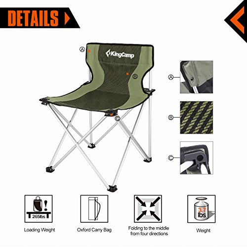 KingCamp Folding Camp Quad Chair Steel Frame Padded Oversized Light Weight Heavy Duty Portable Stable for Camping Fishing Beach Picnic Backpacking Outdoor and Home with Carry Bag