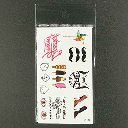 Oottati Small Cute Temporary Tattoo Cat Beard Popsicles High Heels Windmill Peanut (2 Sheets)