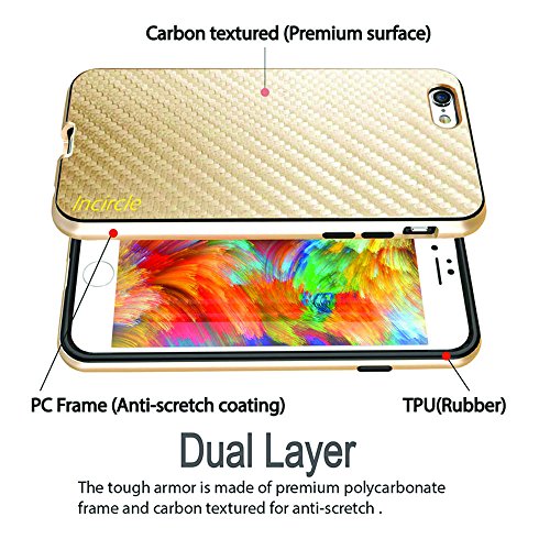 iPhone 6S Case, incircle [Dual protection Series] Premium Carbon Fiber Bumper Cover [Prestige Bumper] [Carbon Fiber Bound] for Apple iPhone 6S (2015) & iPhone 6 (2014) - Gold Carbon Fiber