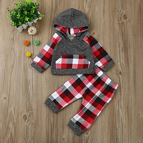 -. Title : Exteren 2pcs Toddler Baby Boy Girl Clothes Set Plaid Hoodie Tops+Pants Outfits