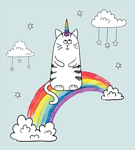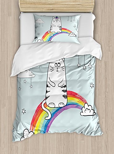 (Ambesonne)/Bedding Bath/Bedding/DIRECT FROM USA/Unicorn Cat Twin Size Duvet Cover Set by Ambesonne, Lovely Figure on Sketchy Rainbow Follow You...