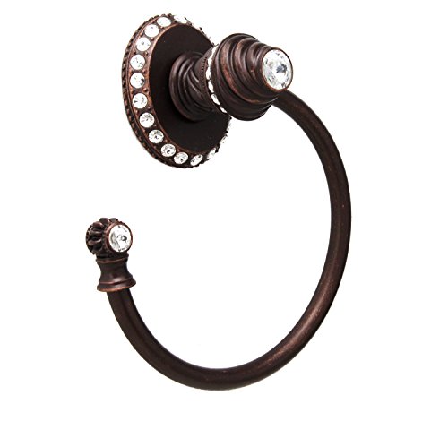 Carpe Diem Hardware 1847-22C Cache II Large Towel Ring Left with Side Crystals Large Escutcheon Made with Swarovski Elements, Oil Rub Bronze