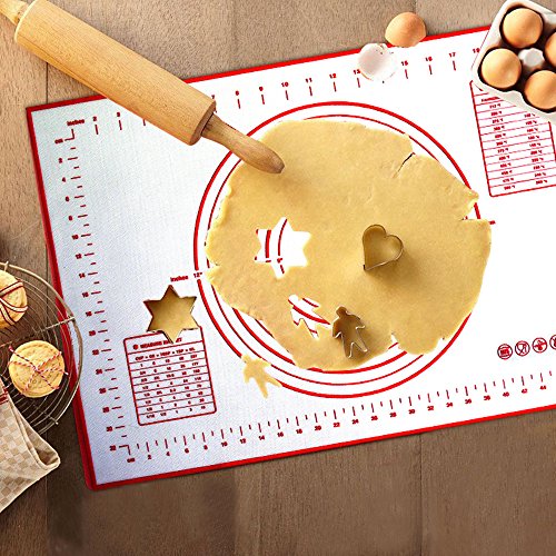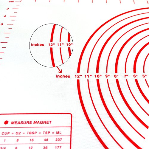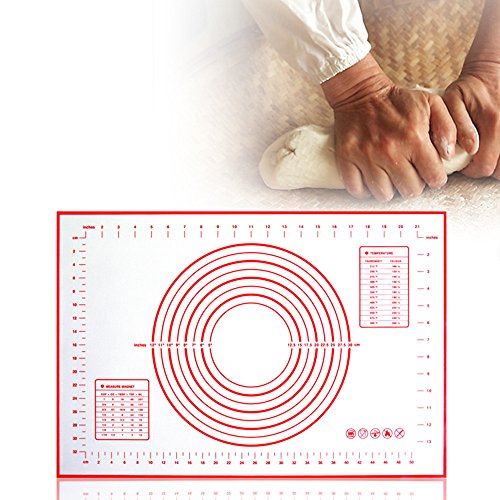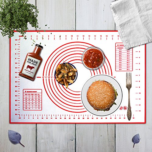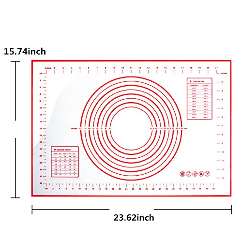 Xixihaha Silicone Baking Rolling Pastry Mat with Measurements Non-Stick&Non-Slip Professional Size 23.62" x 15.74" FDA Approved for Kitchen Cooking Recipes & Desserts(Red)