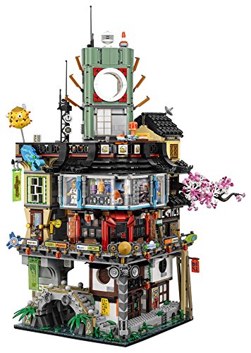 -. Feature : Cludes 16 minifigures: Jay, Kai and Lloyd Garmadon (each with new-for-August-2017 high school outfit decoration), Green Ninja Suit, Misako, Jamanakai Villager, Sally, Ivy Walker / Features a 3-level 6136350 (each level lifts off for easy play) connected by a sliding elevator, plus a traditional fishing boat / Level 1 features a bridge, sewer outlet, stream with translucent water elements, sliding elevator, traditional fish market with fish and crab elements, house with dining room and bedroom / Level 2 features a modern fashion store with 2 mannequins and assorted NINJAGO elements, a construction site with a Bonsai tree, a comic book store with built sign, Cashier desk, comic book stand / Ninjago city measures over 24" (63cm) high, 12" (31cm) wide and 16" (42cm) deep, traditional fishing boat measures over 1" (4cm) high, 3" (10cm) long and 1" (3cm) wide
