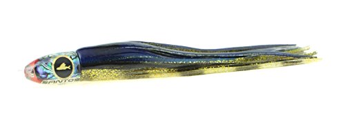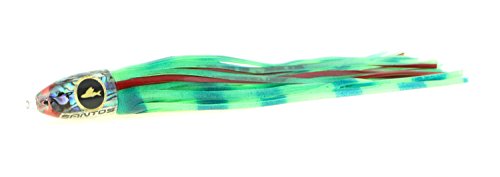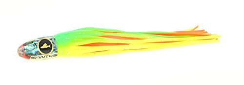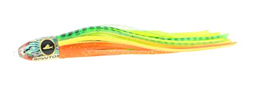 Studio : Santos Tournament Grade Tackle Publisher : Santos Tournament Grade Tackle Binding : Sports Product Description This classic tuna lure has been a top producing standby for years worldwide. Perfectly balanced, it will run well from 6-12 knots in most conditions. It is particularly suited to the long rigger position. The Reaper is also an effective lure for Striped Marlin, Sailfish, Dorado, and Wahoo. Santos offshore big game trolling lures are hand cast from premium urethane which does not require sanding after demolding, and therefore ensures that every lure is identical to the precision engineered prototype. Unlike most trolling lures which are made of polyester resins, urethane lures are optically clear, ultra hard, UV stable, and can be produced with perfect design proportions. Additionally, each lure is heat cured for the ultimate in durability. We use only the finest AAA grade abalone shell veneers, soft PVC anti-chafe leader tubes, and custom made Santos Holographic eyes for our lures. Each lure tailstock is precision CAD designed to perfectly fit our double hand tied skirts, and to make an ideal hydrodynamic transition. Tied skirts allow for easy replacement compared to glued skirts. Each Santos trolling lure features our proprietary (TM) LCM (Low Center of Mass) insert technology that insures that the lure stays upright, and is able to achieve significantly higher trolling speeds. With an upright lure, hook set position and orientation within the skirts are further maintained by our Santos RigLock(TM) system which is a standard feature of all of our big game lures. Santos bluewater trolling lures features supple, vibrant, and durable skirts made in the USA by Ocean Lure Concepts. There are no finer skirts available. 0