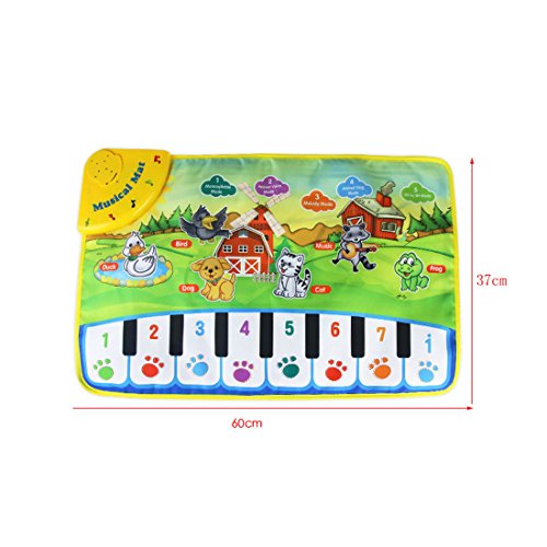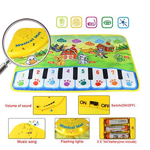 -. Feature : 8 music key of Singing Carpet, your little bay can play on the piano key / Different Activity Modes-monosyllable mode, animal voice mode, melody mode, animal sing mode, bit by bit mode,once transforms mode,the following 8 keys will transform corresponding mode / Adjustable volume: Mom can adjust the volume according to their children's hobbies so that you do not worry about high volume will scare your baby anymore / Touch sensitively: Exercises the child's coordination ability by touching this singing carpet / Safe non-toxic material and portable that you can carry everywhere