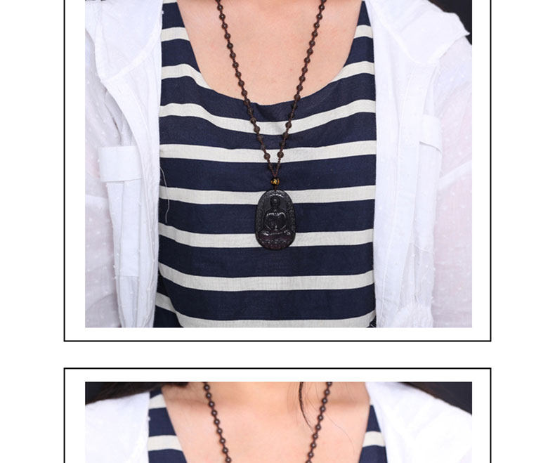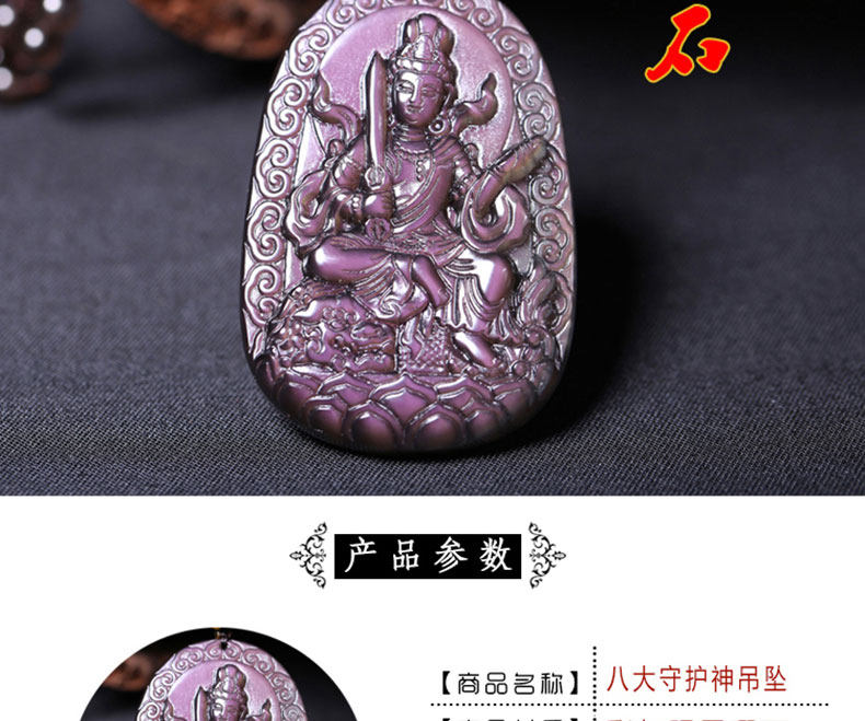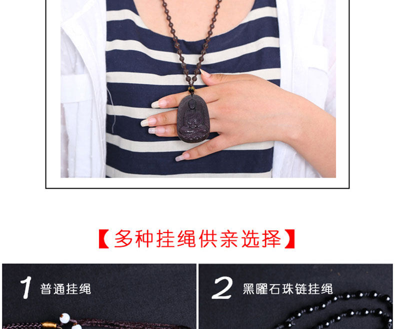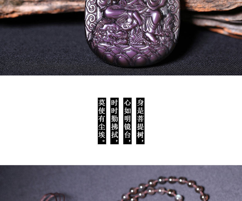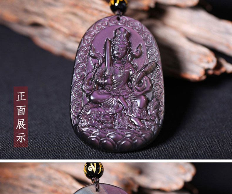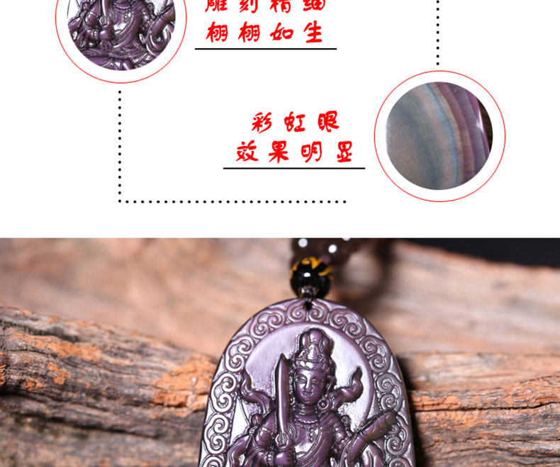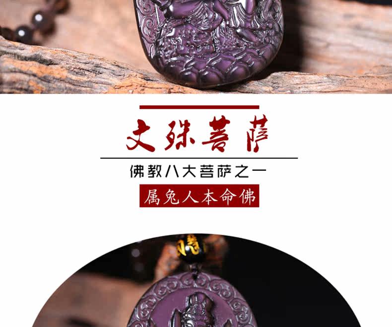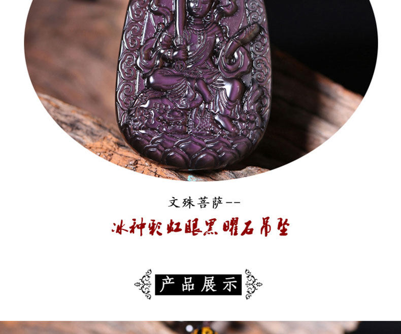 开光新款冰彩黑曜石文殊菩萨佛吊坠十二生肖属兔本命佛守护神项链