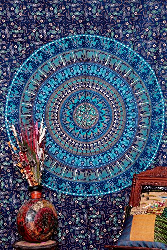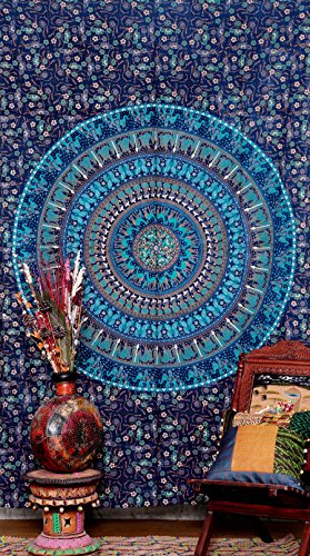This tapestry is a creation of eastern motifs infused with modern concepts. These wonderful prints are a great way to add color to your bed, ceiling, and wall.. This gorgeous piece of art can be used as Bedspread, Bed Cover, Table Cloth, Curtain and of course as a Tapestry or a Wall Hanging....Also perfect to take along to a picnic or to the beach. For your comfort it is hand printed on 100% cotton, in spacious child free factories... Add an ethnic feel to your room with this cotton handmade wall hanging... PRODUCT SPECIFICATION: - Fabric: 100% Cotton Fabric, Screen Printed Design.. - Usage: Bed Cover, Tapestry, Curtain, Wall Hanging Or Table Cloth. -Size: The sheet measures 56inch x 86inch approx.(single Bedsheet Size) - CARE: Dry Cleaning Or Cold Water Wash Washing Instructions: 1. Wash in Cold Water 2. Do not use chlorine bleach NOTICE: - Because of the unique and handmade nature the measurements above may differ a small bit from the real one. - Actual colors may vary from those shown due to the nature of photographing and monitor color settings.