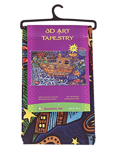 3D Steampunk Tugboat Tapestry -- Sunshine Joy's 3-D Tapestries take beautiful, large-scale art and design into another dimension. You stare at your new Sunshine Joy tapestry intently as it hangs on your wall. You marvel at its intricate and well-crafted design and love the beauty it brings to your environment. The colors and artwork are inspiring. One would never expect anything more from this printed fabric. But then, you break out Sunshine Joy's 3-D Glasses and WOW. You have gone deep down through the rabbit hole and into another dimension. It appears that you can get your hands behind the colors, and it's fun watching your friends do just that. -- The designs look beautiful to the naked eye and incredible with our 3-D glasses -- In India, they are what locals use as bedcovers. People use them at home for tablecloths, bed-sheets, room dividers, curtains, window treatments, ceiling decor and to quickly cover up. - The corner loops make our tapestries the perfect multipurpose outdoor traveling companion. Secure your picnic sheet . At festivals, stake out an appropriate amount of space for your friends. Tie up a sunscreen at the campsite. Great at the beach as a windproof beach sheet or sun cover-up. 100% Cotton. Our tapestries are printed, not quilted or woven. They are hippie Indian tapestries. Thin as sheet. Good, tight power loom construction. Hemmed edges. The printing process is unique to India. Each tapestry has its unique imperfections. Sunshine Joy's tapestries are printed with a special soft fiber reactive dye. This is the same soft feeling of your favorite tie-dyed T-shirt. Some colors may show through the back side to give the impression that they are double sided with one side lighter than the other. Actually, they are only printed on one side. -- Size is approximately 5 feet by 7.5 feet. 60 inches by 90 inches 152 centimeters by 228 centimeters 1.52 meters by 2.28 meters. Fits a twin XL college dorm bed.