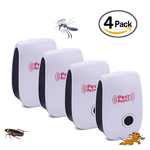Ultrasonic Pest Repeller - Electronic Pest Control Plug In-Pest Repellent for Insects -Mice ,Roaches ,Bugs , fleas , Mosquitoes and Spiders - Set of 4