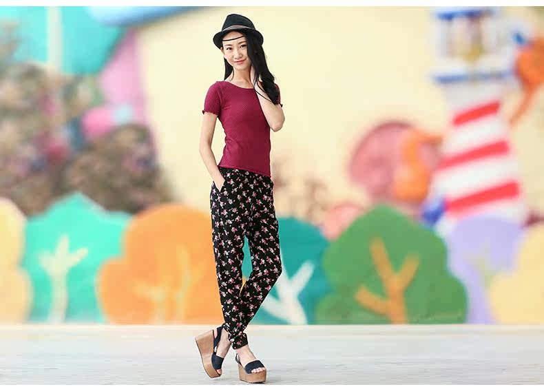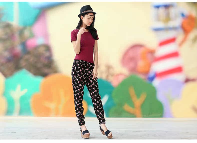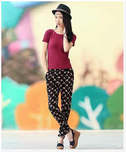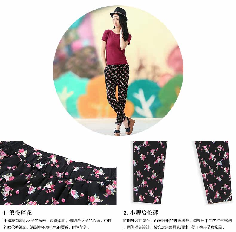 休闲哈伦裤 / 浪漫花色 垂坠自然 /松紧中腰 /两侧插兜 /垂坠人棉 透气舒适