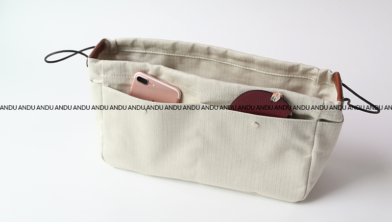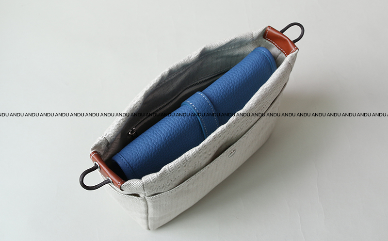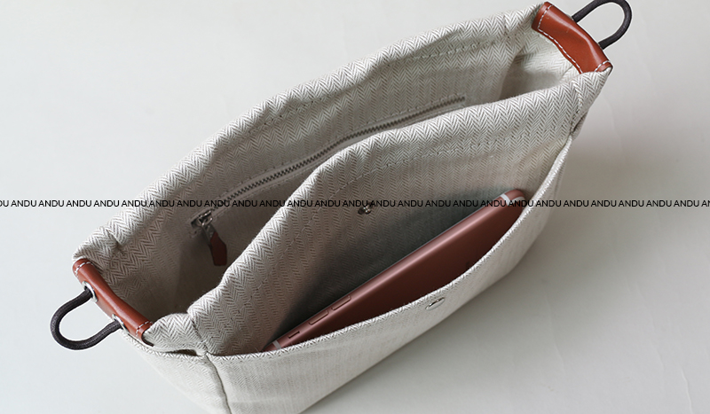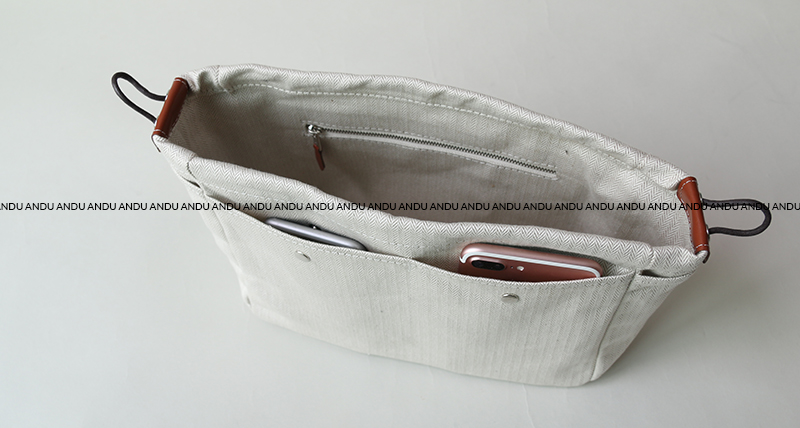 White pouch, pico tan herringbone inner bag, inner bag