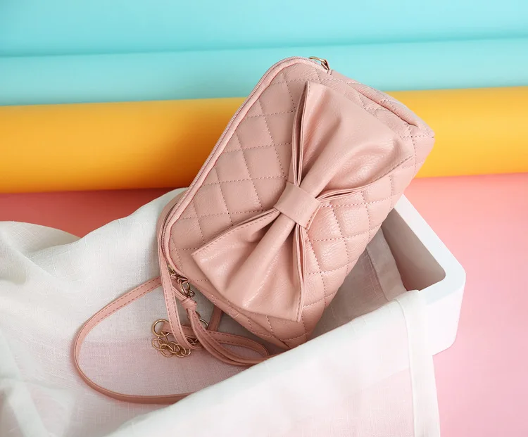 2018 New Female Shoulder Bag Japan:Rhombus Tassel Bucket Bag