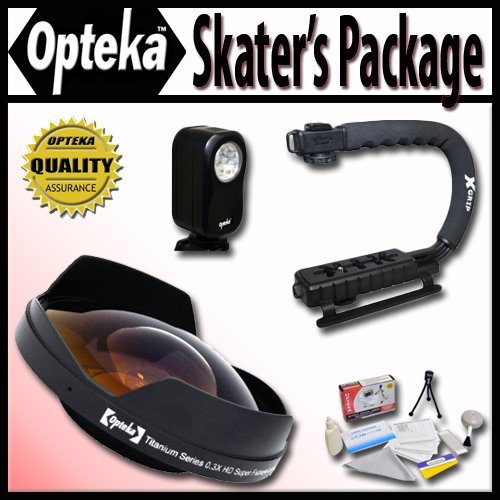 Opteka디럭스Skaters」팩키지( Includes the Opteka 0.3X Ultra Fisheye렌즈,x-grip핸들& vl-20LED비디오 라이트for