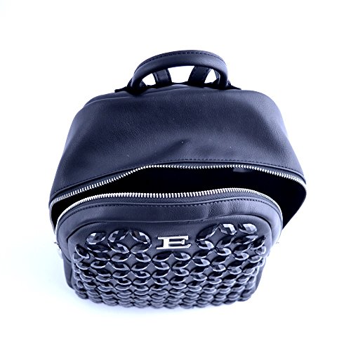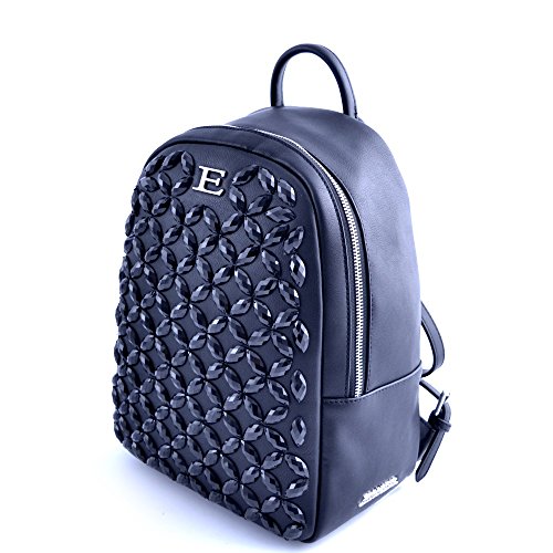 -. Title : Ermanno Scervino woman handbag black leather backpack with applied gemstones.