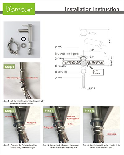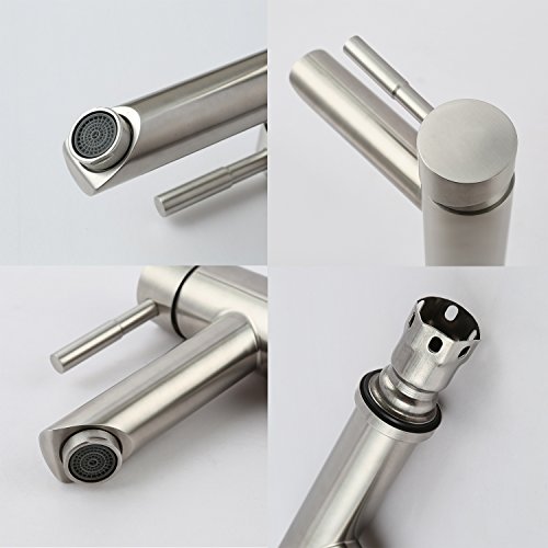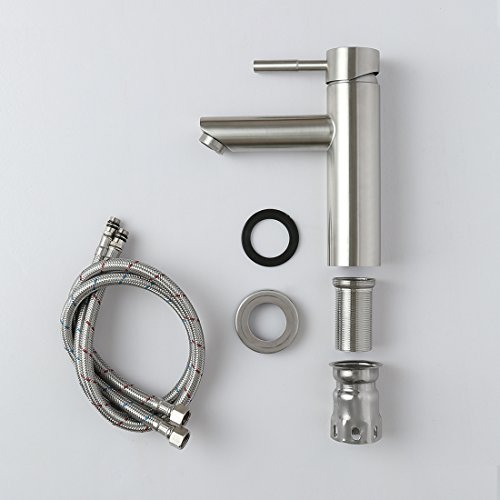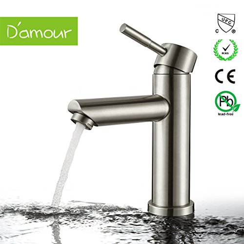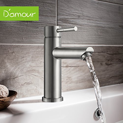 D'amour Bathroom Faucet, Lavatory Single Handle Brushed Nickel Bathroom Sink Faucet, Hot and Cold Water Vanity Faucet